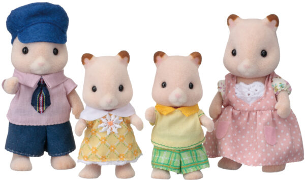 Sylvanian Families: Οικογένεια Hamster.Ο μπαμπάς Huckleberry είναι ένας καλός οδηγός λεωφορείου που οδηγεί ομαλά και με ασφάλεια. Του αρέσει τα παιδιά να απολαμβάνουν τη διαδρομή τους με το λεωφορείο, γι’ αυτό φροντίζει να διασκεδάζουν με γέλια και τραγούδια. Η Hilda είναι η δασκάλα του νηπιαγωγείου και λατρεύει το τραγούδι. Όταν τα παιδιά είναι ανήσυχα καταφέρνει και τα ηρεμεί μόνο με το τραγούδι της! Ο George όταν δεν παίζει ποδόσφαιρο, φτιάχνει όμορφες κούπες από πηλό και τις χαρίζει στην οικογένεια και τους φίλους του. Η μικρή Jane λατρεύει να δημιουργεί και να γράφει ιστορίες. Κάθε φορά τα παιδιά στο χωριό των Sylvanian ανυπομονούν να γράψει το επόμενο μυθιστόρημα της.