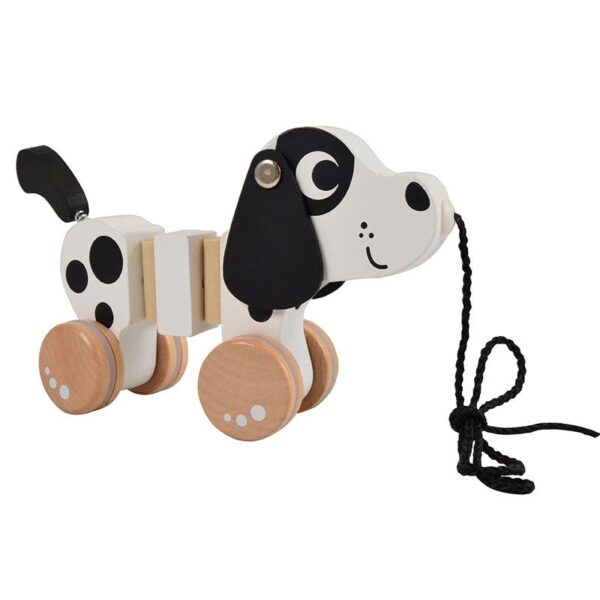 Ένα πανέμορφο σκυλάκι ασπρόμαυρο (μπορεί και Δαλματίας) που θα τρέχει πίσω από το παιδί και θα του χαρίζει ωραίες βόλτες με το πρώτο του ξύλινο κατοικίδιο.